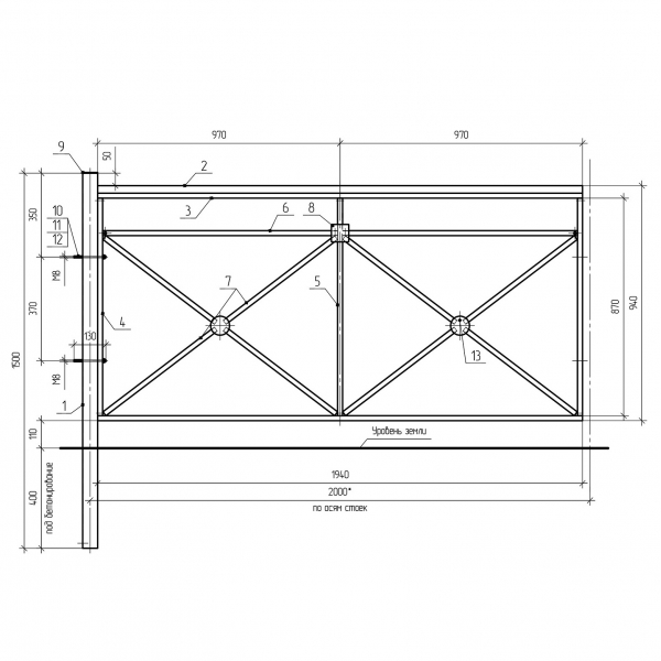 Устанавливается перильное ограждение ПО-3 путем бетонирования каждой ножки, которые будут выведены в нижней части изделия.