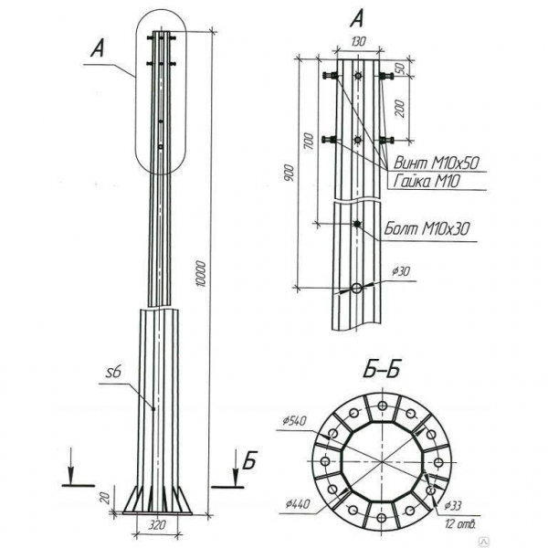 Опора СФГ — опора силовая фланцевая гранёная применяется для освещения автомагистралей, дорог, торговых территорий, установки рекламных щитов и т.д. Возможно использование в районах с сильными ветровыми нагрузками, а также в районах, где нельзя осуществить подземную прокладку кабеля.