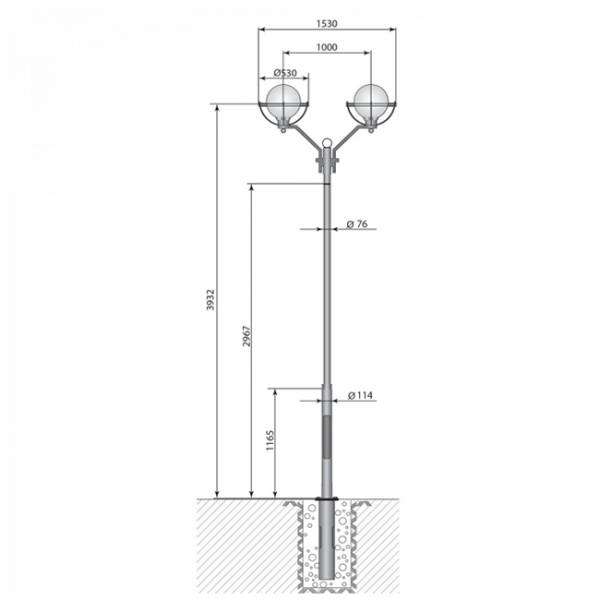 Декоративная опора "Бол"- 2 - 4,1 предназначены для освещения парков, скверов, набережных, аллеи, коттеджных поселков, прилегающих территорий. Установка производится на железобетонные фундаменты, имеющие в своем составе закладной элемент.