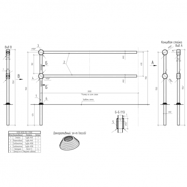 Устанавливается перильное ограждение ПО-1 путем бетонирования каждой ножки, которые будут выведены в нижней части изделия.